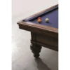 The unique iron slate frame supports the precision ground slate to ensure a lifetime’s trueness. The solid Walnut top rail is bolted to the slate to ensure the most perfect and consistent rebound and playing characteristics. The Rochevilaine has American specification cushions and pockets so oversize balls are required to play English pool or snooker.